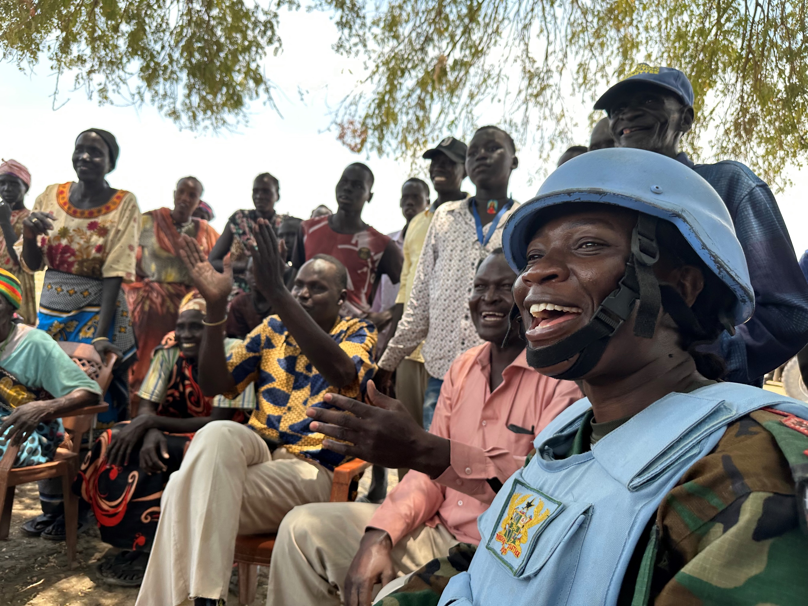 In January 2023, following a spike in community violence in Majbong, a village in southeast Abyei, Captain Erzuah’s platoon stepped up its presence, regularly checking on the plight of displaced people in the volatile area and enabling the Mission to provide necessary support. Community members, who had sought sanctuary from the fighting in the surrounding bush, gradually began returning to their homes in the village and women reported feeling much safer. “The mixed patrols are (...) boosting the confidence of members of the community to go about daily activities safely,” said Deng Paul Mankuol, a traditional chief in Majbong.